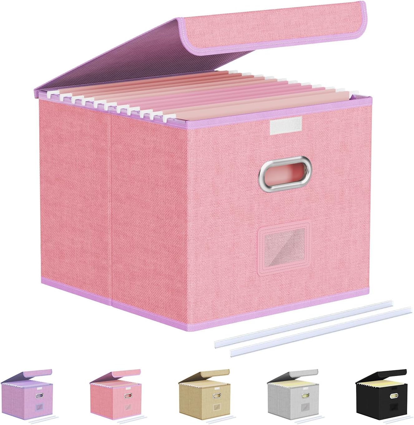 - [Perfect Details]:Each file storage organizer comes with two high-quality hardware handle, one leather label tab and two clear bar.Different from traditional styles, each color file box has a unique color combination, ensuring durable and stable product quality and elegance of products.