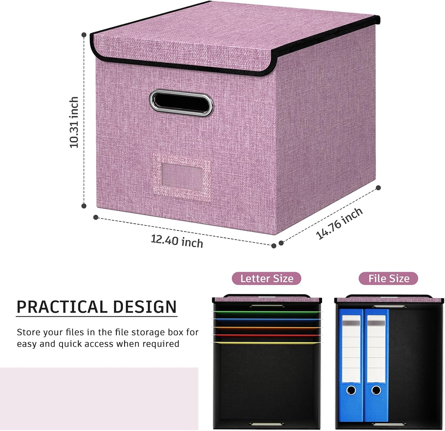 - Foldable Storage Box Design:File organizer has metal handles on both sides for easy movement and easy assembly. Clear label slots on the side for easy sorting and identification. Linen material is dustproof and provides durability for the file box, the bottom is reinforced to ensure the safety of the file storage, foldable design is more space-saving.