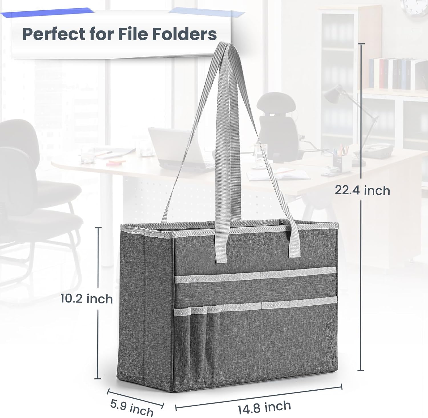 - DURABLE AND SPACIOUS: The file organizer tote is made of premium nylon fabric for long term using. And the four sides of the bag are supported by hard boards, which can fully support the hanging file folders. It has good durability and strong weight capacity.