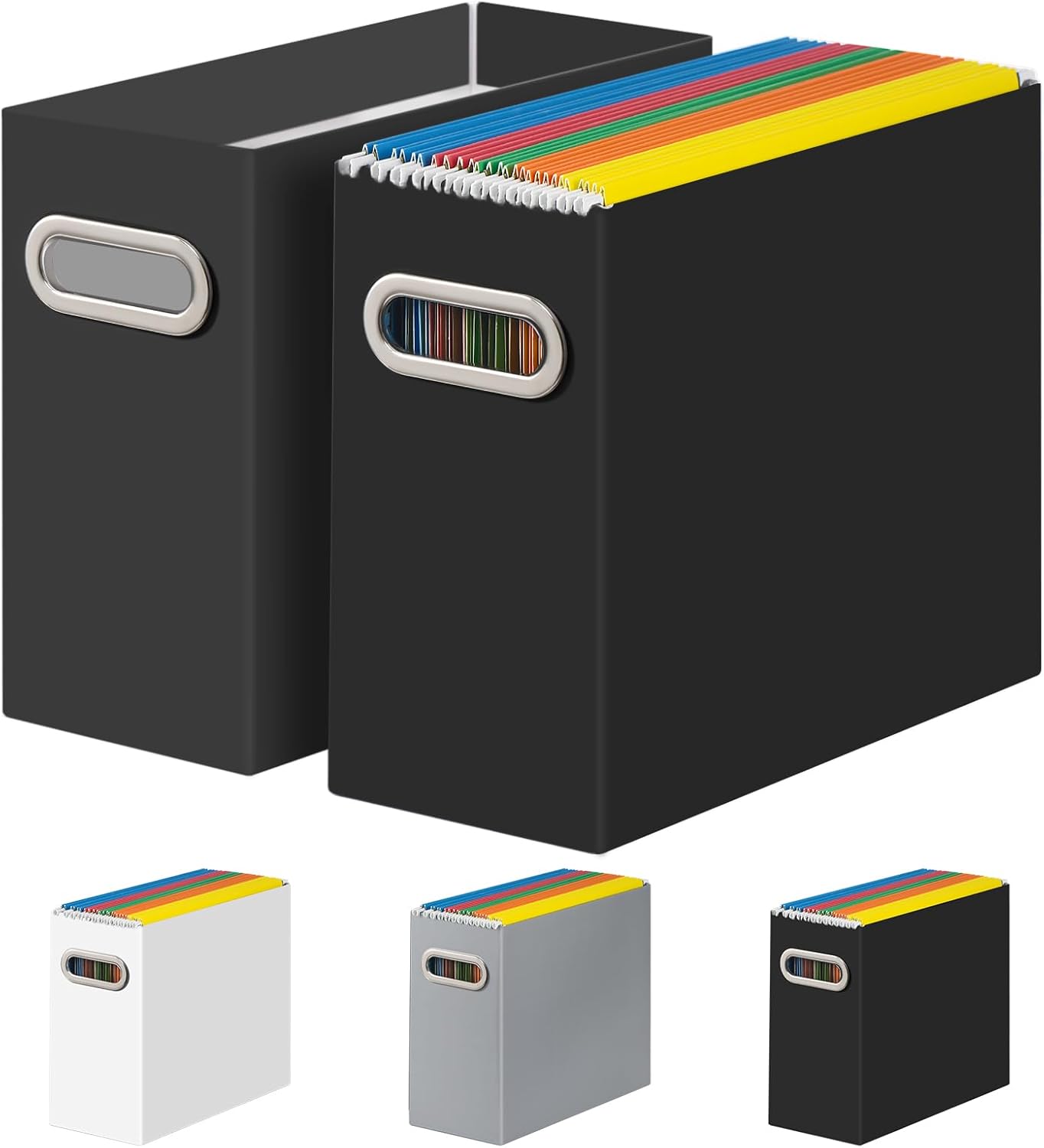 - 【High-Quality】Made of thick, sturdy cardboard. Double-layer reinforced cardboard around will help you store more file folders without tipping sideways. Portable design with 2 metal handles on the two sides, easy to carry.