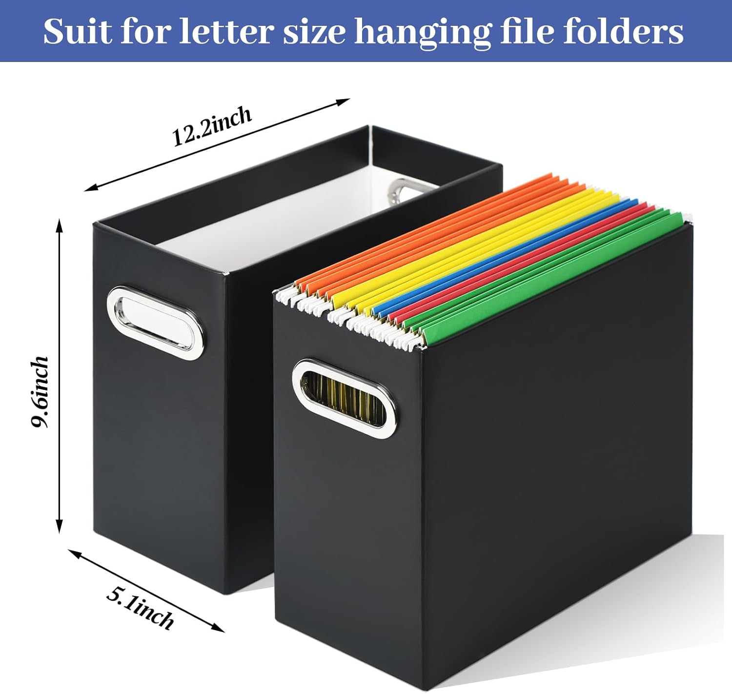 - 【Product Dimension】The file box measures 12.2×5.1×9.6 inches, a practical size for holding hanging file folders, documents, bills and other paper works. It can hold nearly 30 pcs of letter-sized hanging file folders. Much capacity to meet your needs.