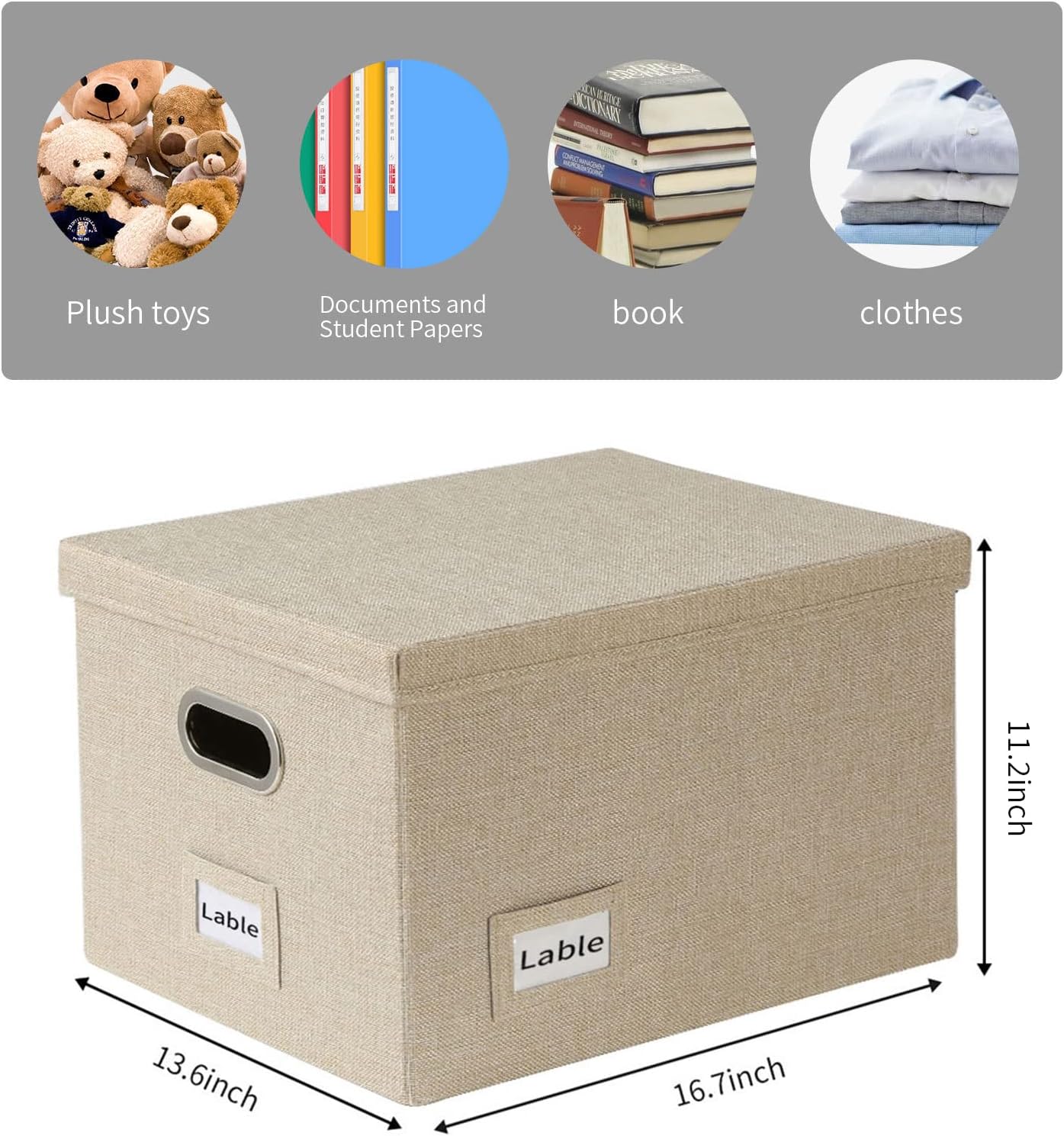 - 【LARGE CAPACITY】 Our file storage set to include 1pcs file cabinet + 2 pcs replaceable white label paper+2pcs metal slide rails, File folder box measures 16.7 x 13.6 x 11.2 inches. This file box organizer is perfect for letter and legal-size documents. The functional and decorative design of the box creates a flat and unclutred space. The file storage box is enough to hold and keep all your documents organized.